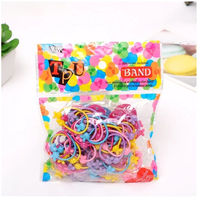 Nuotrauka pavyzdinė, kurioje pavaizduota gerokai daugiau, nei 10 vnt. plaukų gumyčių.