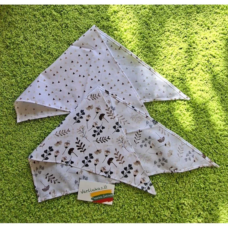 Jos trikampio formos, rišamos. Tiks mažiesiems, kai tik pradeda dygti dantukai - apsaugos rūbelius nuo seilių, tiks ir pasivaikščiojimams lauke - apsaugoti kakliuką nuo vėjo, puikus akcentas aprangoje.