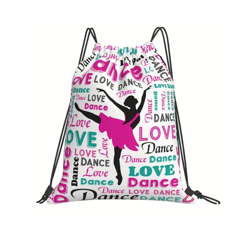 Vaikiškas maišelis su raišteliais šokių aprangai. Puikiai tinkanti šokių aprangai: triko/glausitnukei, šokių bateliams, gertuvei ir pan.