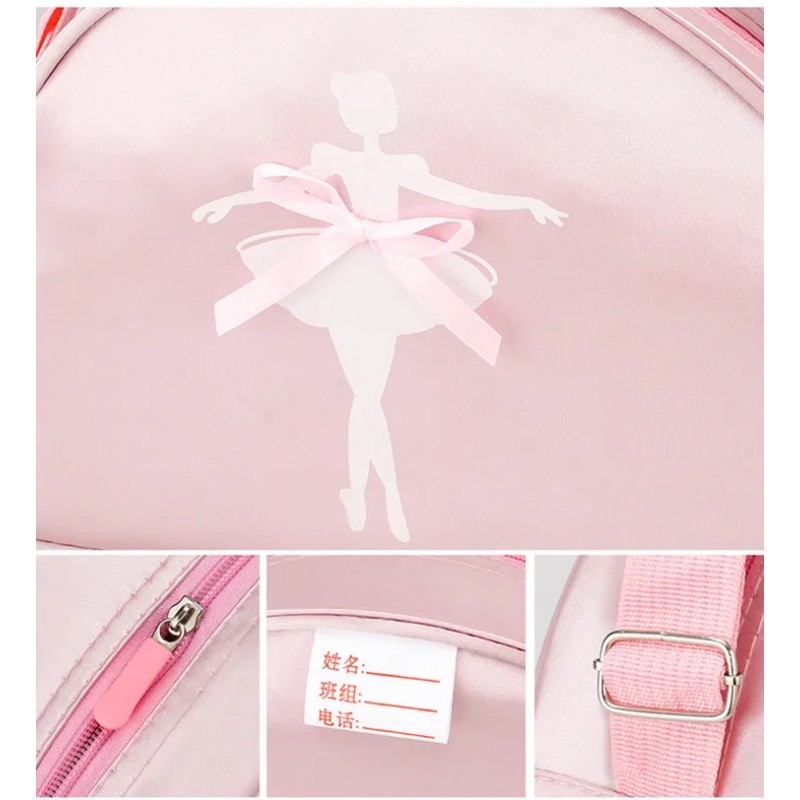 Labai patogus, puošnus krepšys šokių aprangai. Į krepšį puikiai tilps triko, sijonėlis, pėdkelnės, šokių tapkutės ir kiti aksesuarai kaip telefonas, gertuvė ir pan.
