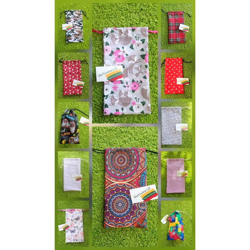 Asortimente turime daug ir įvairių medžiaginių maišelių. Maišeliai įvairių spalvų, raštų. Patogūs, talpūs.