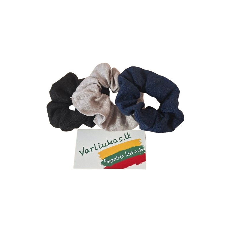 Lininės plaukų gumytės (3 vnt) nepeša, nesuvelia plaukų. Jos nedidelės, 8 - 10 cm skersmens, suriš ir kasytes ir kuodelius.