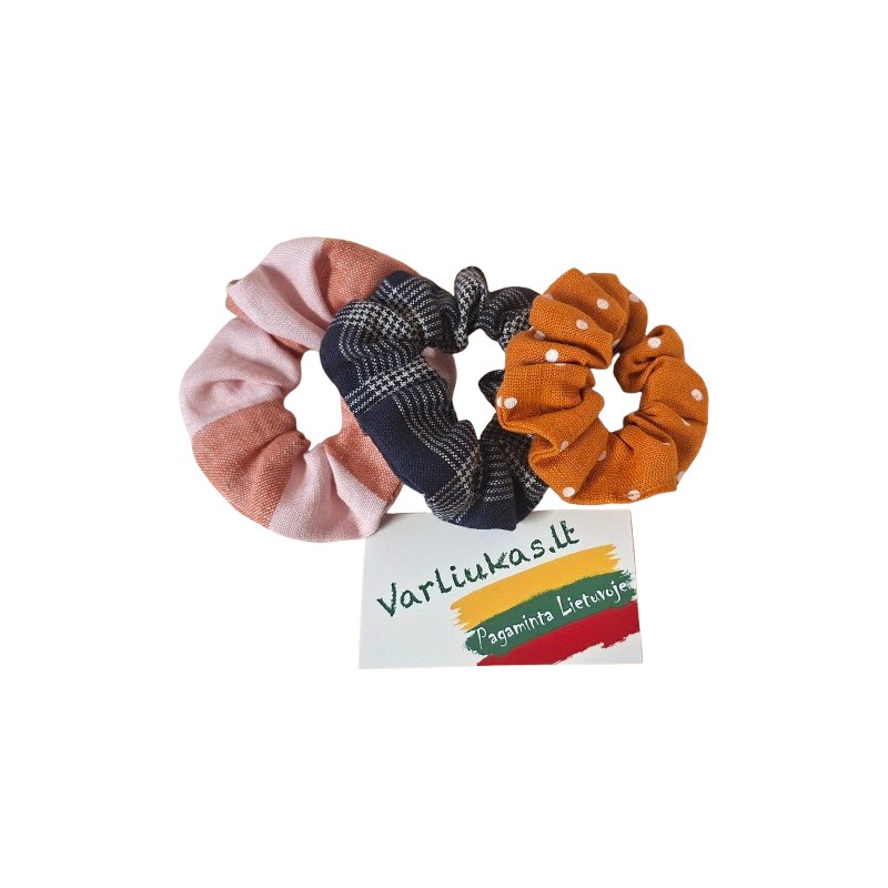 Lininės plaukų gumytės (3 vnt) nepeša, nesuvelia plaukų. Jos nedidelės, 8 - 10 cm skersmens, suriš ir kasytes ir kuodelius.