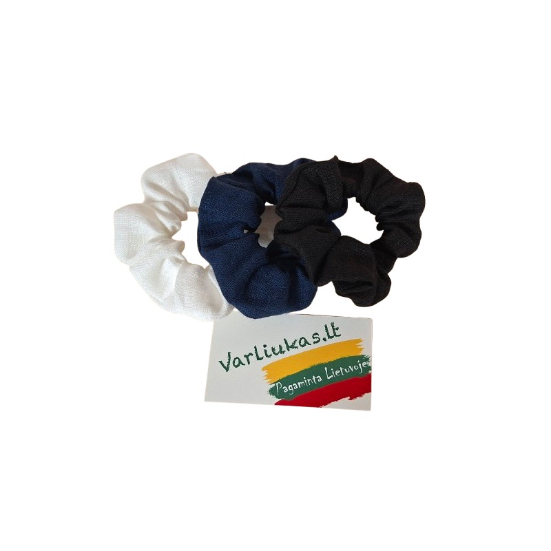 Lininės plaukų gumytės (3 vnt) nepeša, nesuvelia plaukų. Jos nedidelės, 8 - 10 cm skersmens, suriš ir kasytes ir kuodelius.