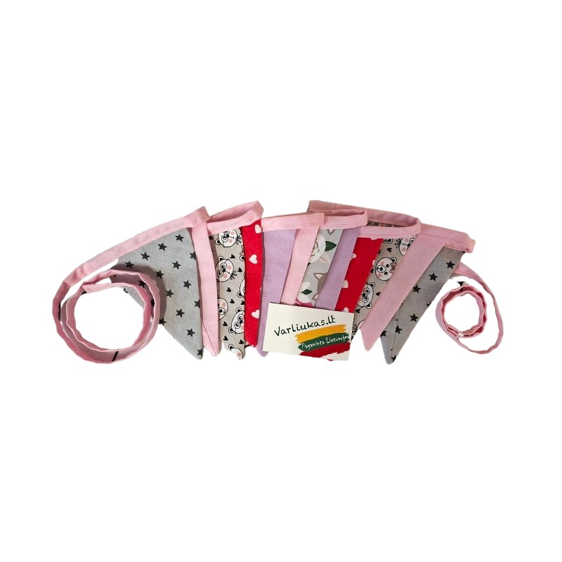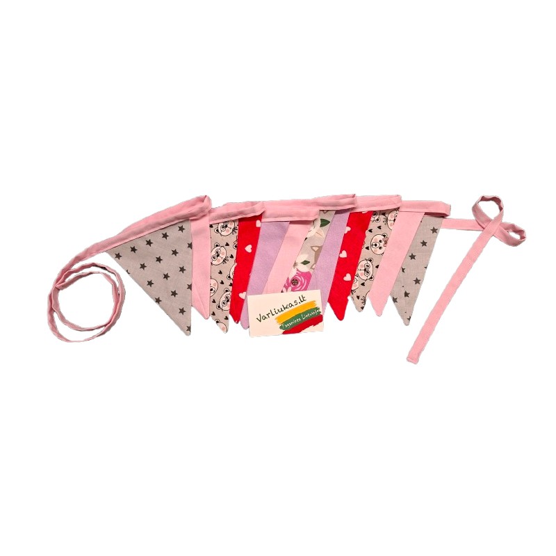 Medžiaginės vėliavėlės - girlianda. Įvairių spalvų, raštų.