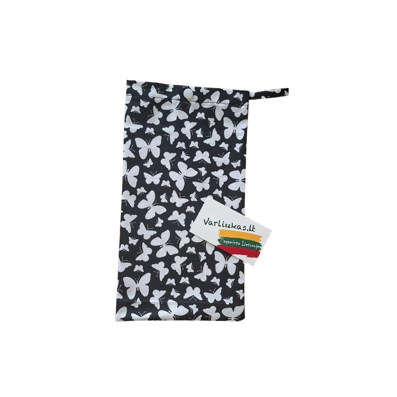 Šokių batelių maišelis. Maišelis susisega spaudės pagalba. Maišelyje įsiūta auselė patogiai leis pakabinti.