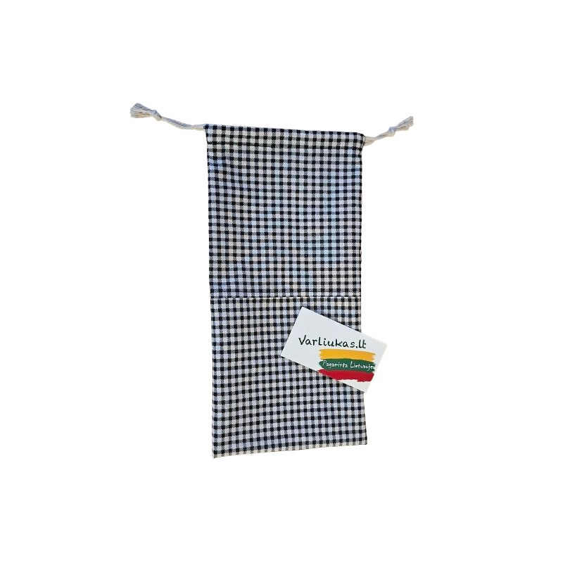 Audinys - medvilnė. Maišelis pasiūtas iš languotos medvilnės atraižos.