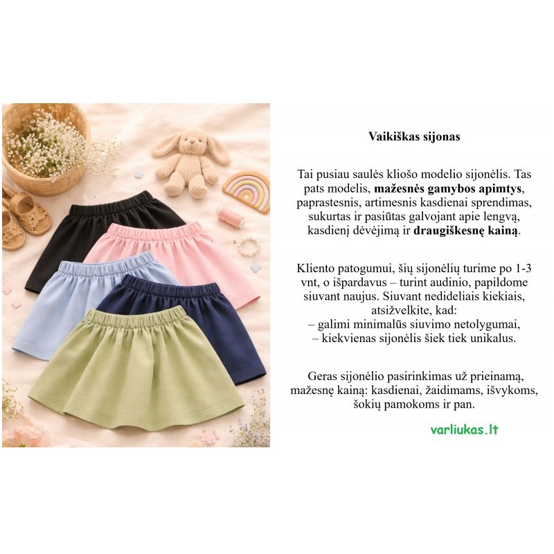 Prie sijonėlių siūlome prisiderinti ir įsigyti pėdkelnės ar leginsus mergaitėms. SPAUSKITE ČIA.