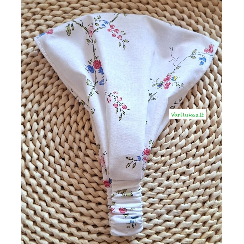 Skarelė tokia - tokia, kokią matote pagrindinėje nuotraukoje. Skarelės gale yra įsiūta guma, kur užtikrina patogumą, nespaudžia galvos, ausyčių, lengvai užsideda ir nusiima.